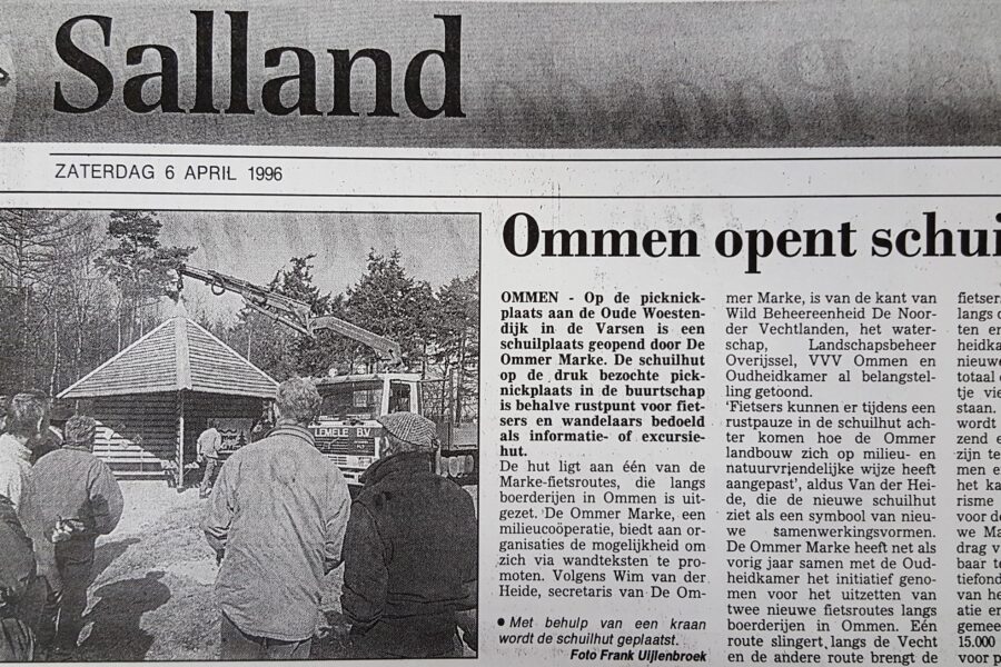 1996 Wim van der Heide Plaatsing eerste informatie/schuilhut in Varsen, Gemeente Ommen daarna volgden Beerze, De Ommerschans en Lemele.